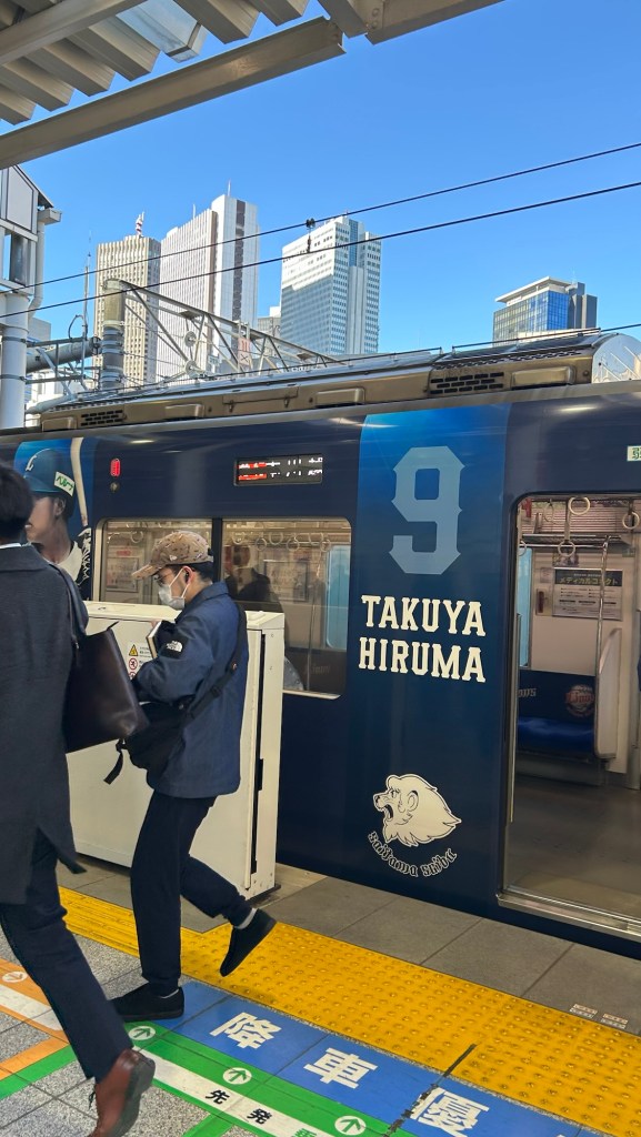 Todos hemos visto en internet fotos de trenes temáticos de Hello Kitty o Pokemon. Yo vivo en una linea muy aburrida, pero muy orgullosa de su equipo de baseball, los Leones de Saitama.